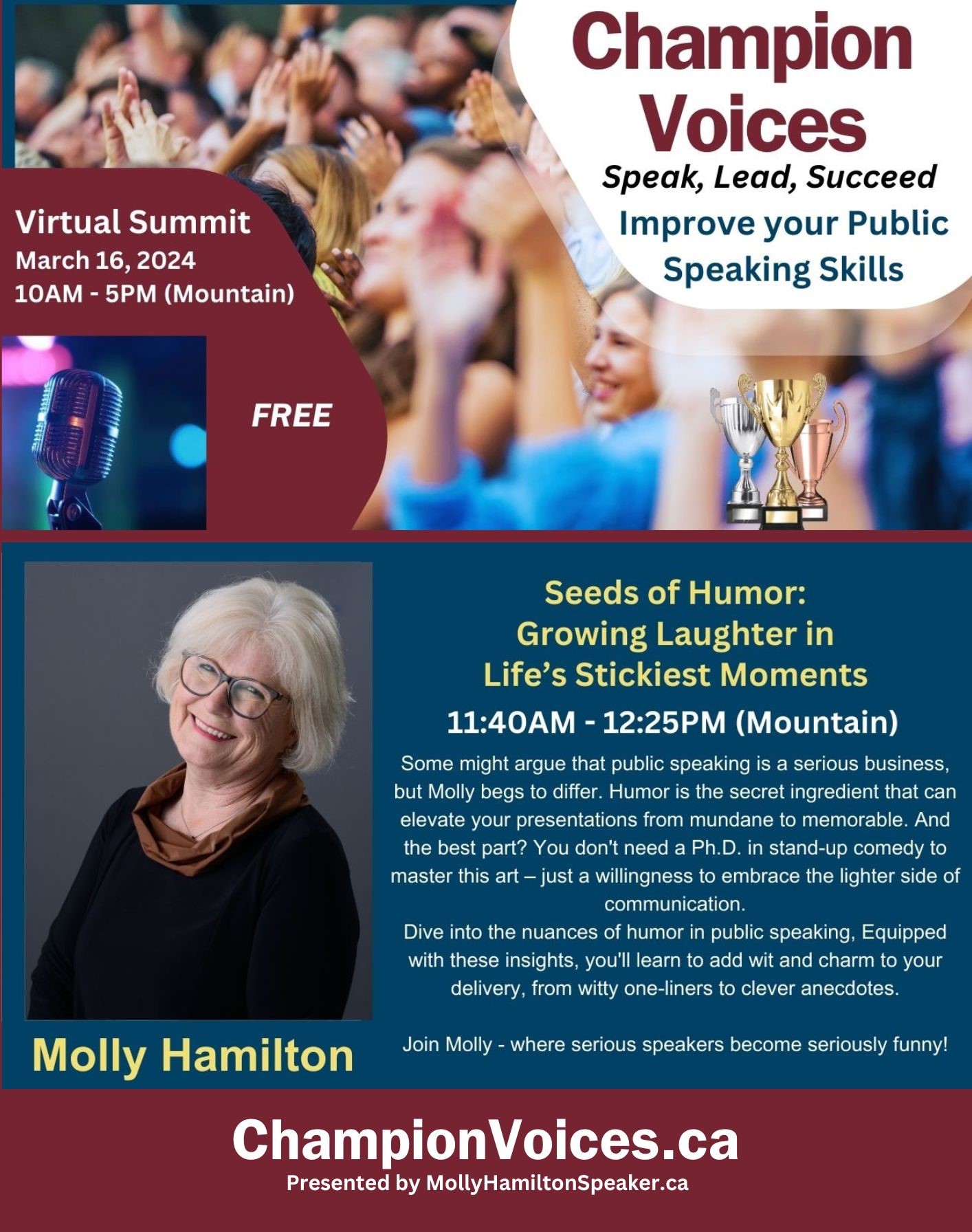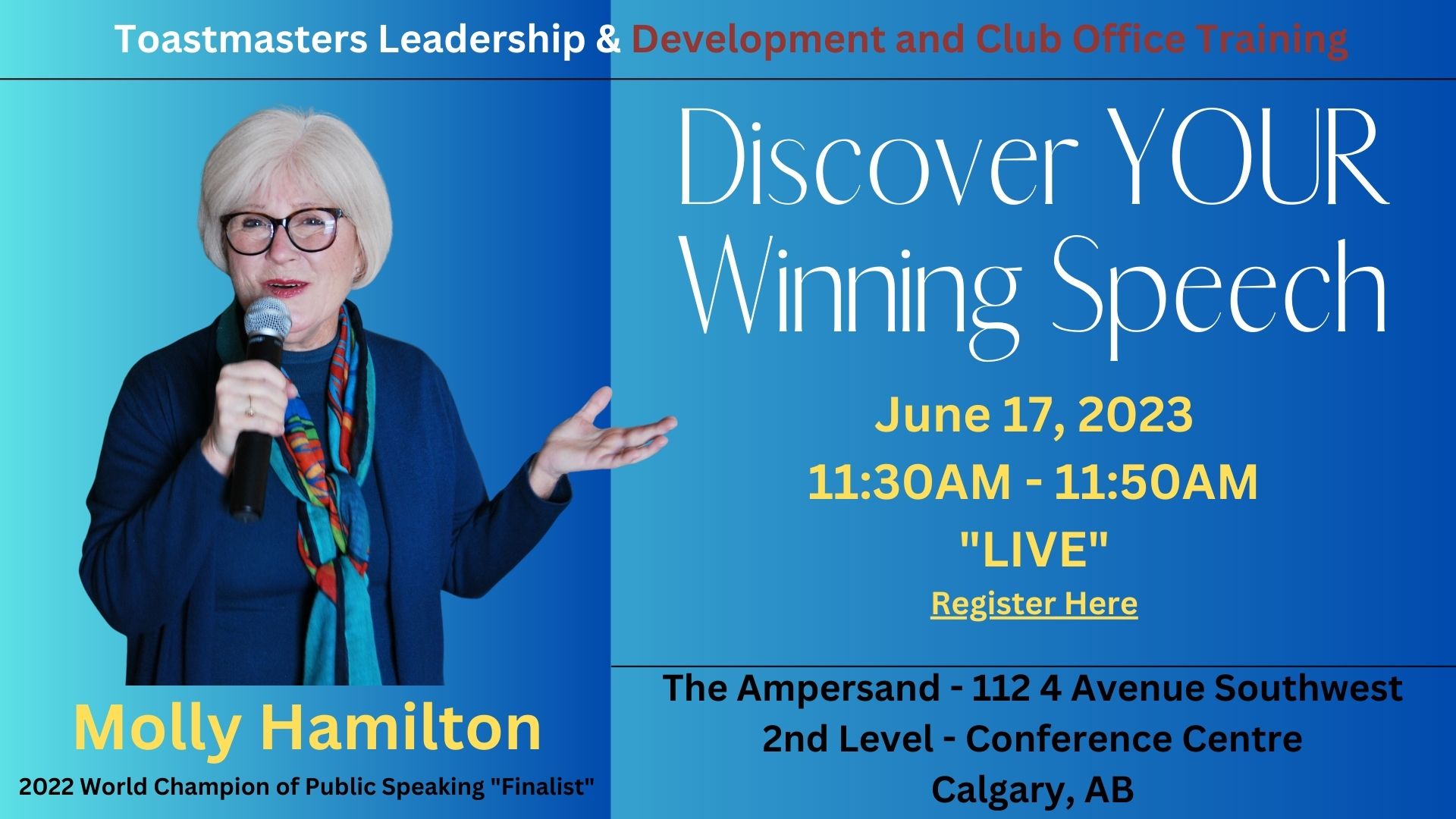 Join Molly Hamilton in her workshop called “Discover YOUR Winning Speech”.