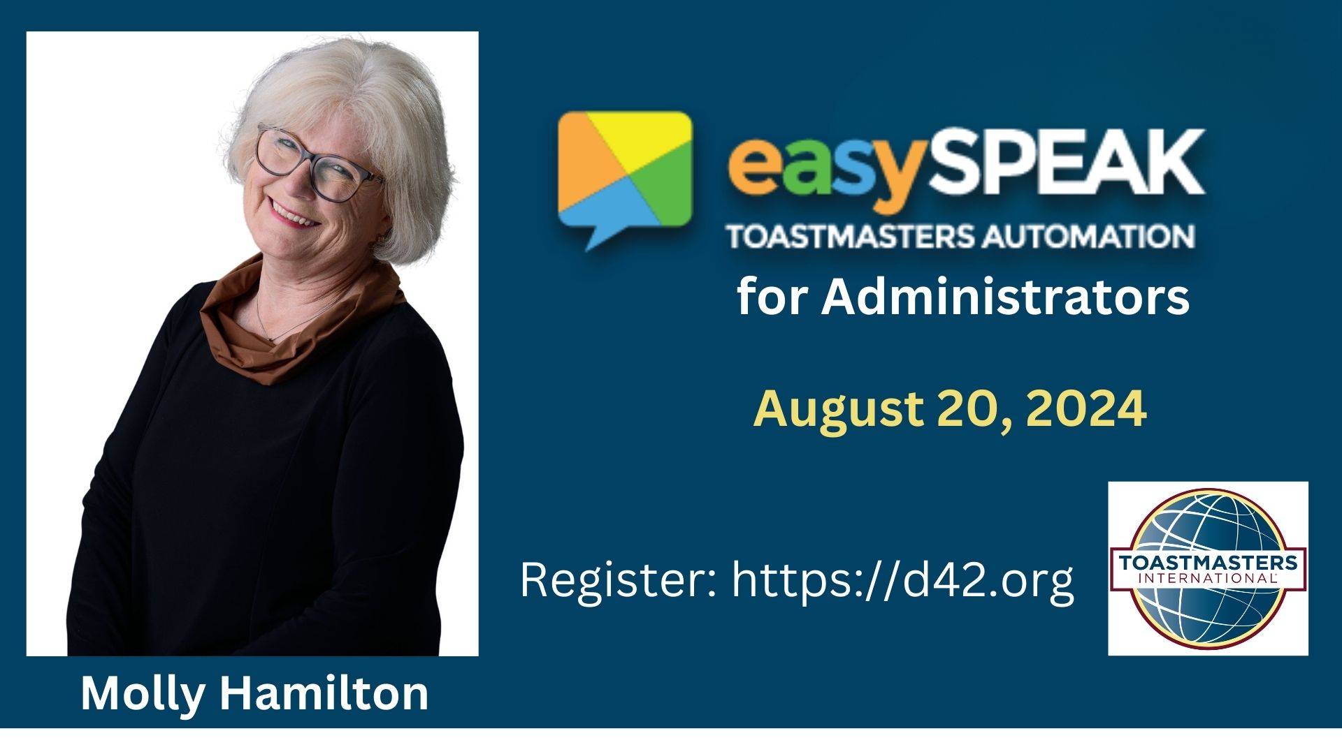 Come learn from Molly Hamilton and other expert panelists how competing in or supporting a Toastmasters International contest event helps you!